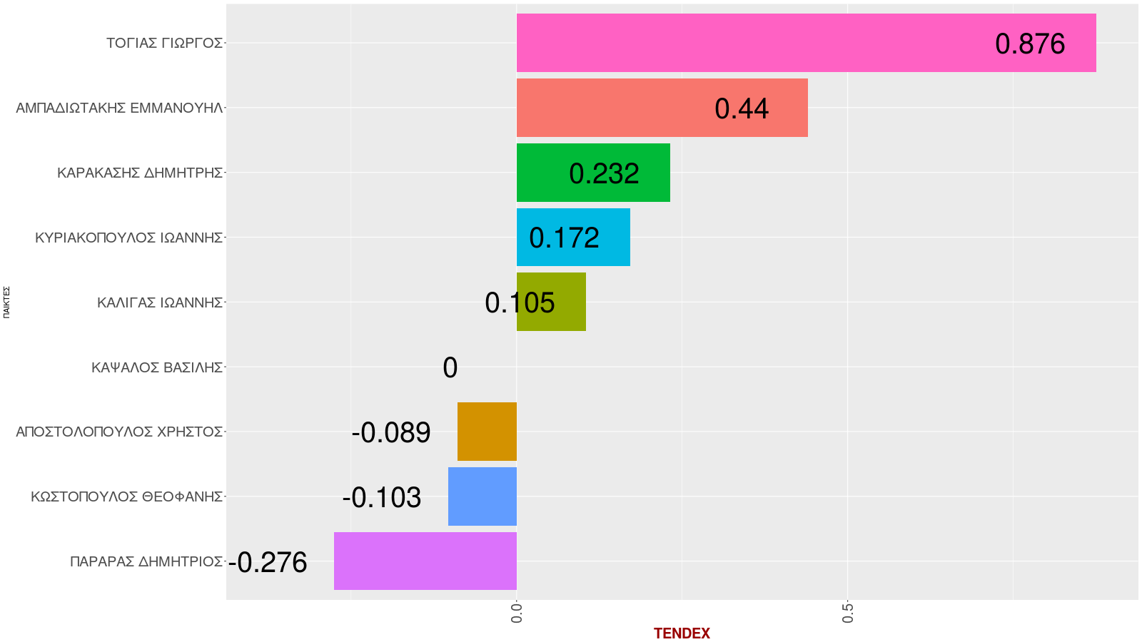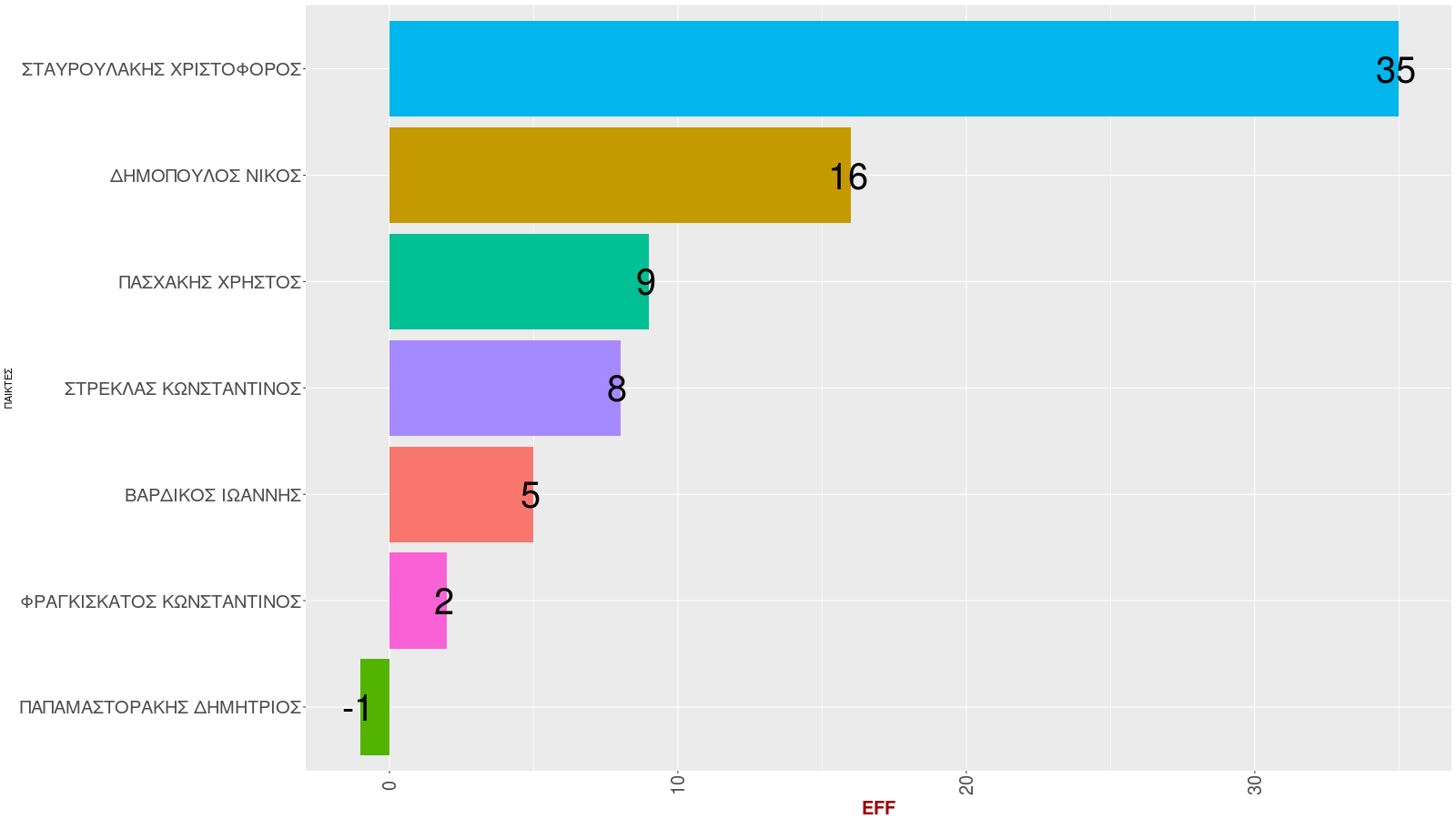 | 14 | Κοψίματα (ποσοστό) | ΣΤΑΥΡΟΥΛΑΚΗΣ ΧΡΙΣΤΟΦΟΡΟΣ | 7.4 |