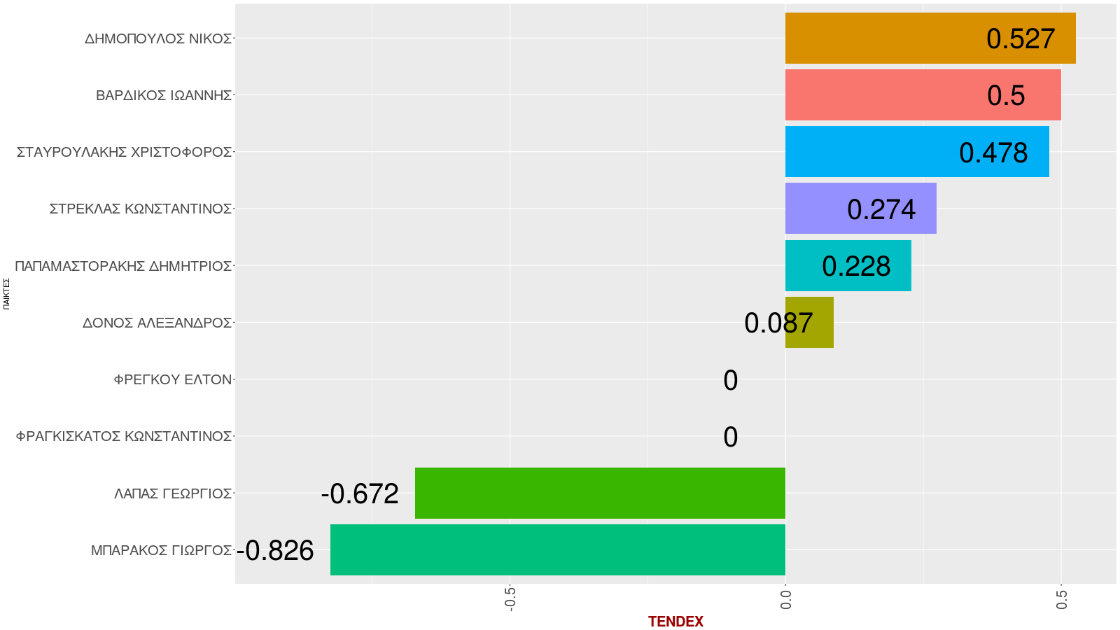 | 14 | Κοψίματα (ποσοστό) | ΠΑΝΑΓΟΠΟΥΛΟΣ Η | 11.1 |