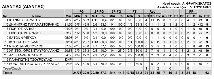 | 9 | Αποτελεσματικότητα στα σουτ 2π/3π (ποσοστό) | ΜΠΑΡΑΚΟΣ ΓΙΩΡΓΟΣ | 50.0 |