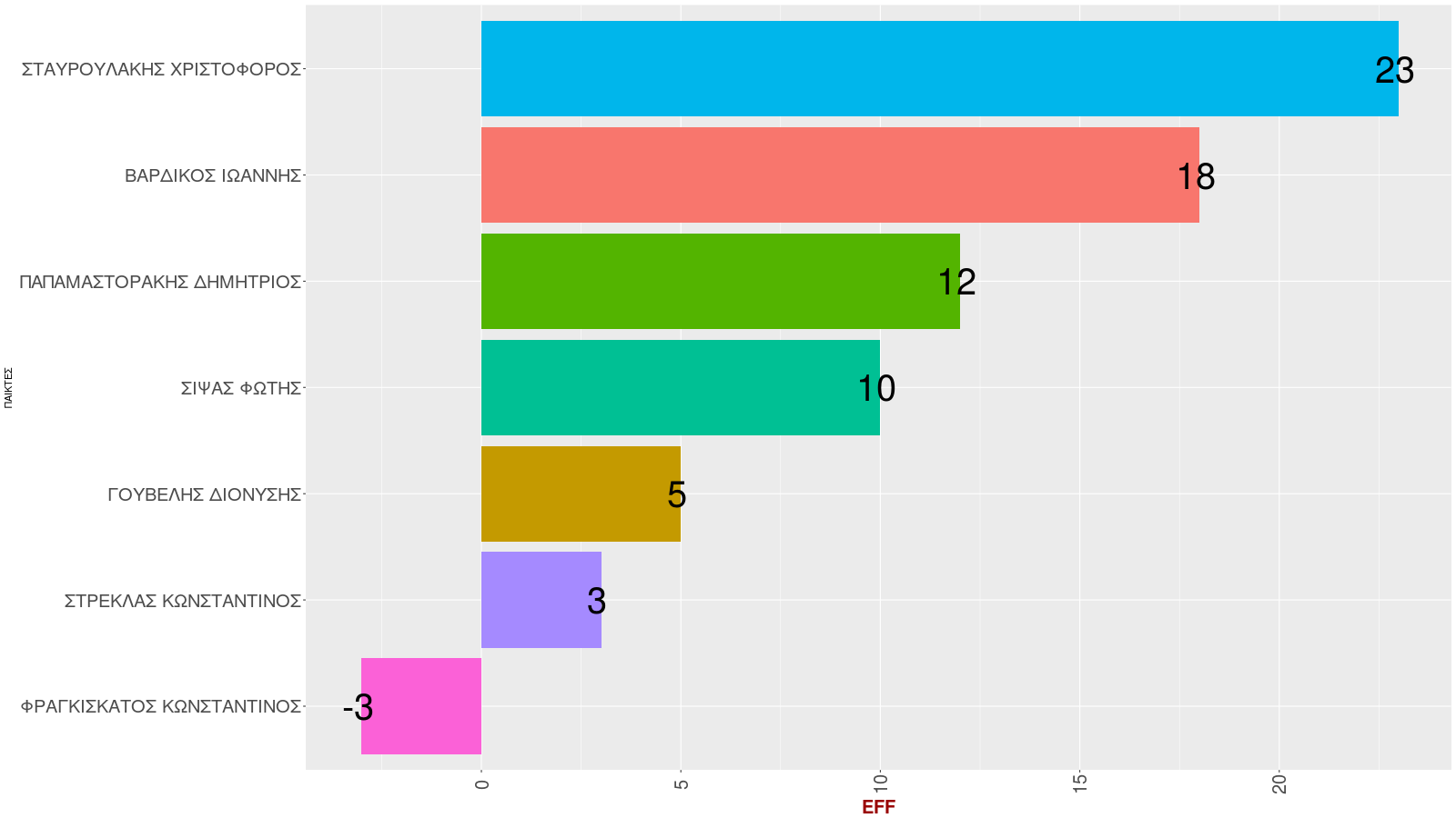 | 5 | Διαχείριση παιχνιδιού (κοντά στο 20) | ΣΤΡΕΚΛΑΣ ΚΩΝΣΤΑΝΤΙΝΟΣ | 17.7 |