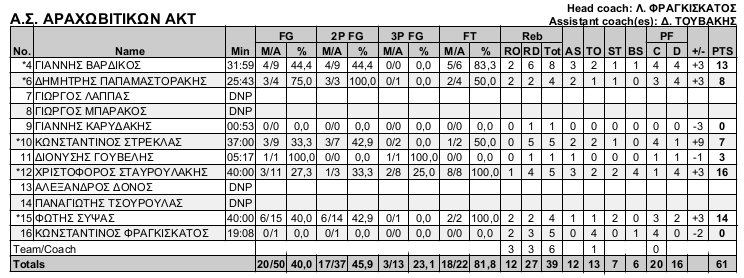 | 8 | Αποτελεσματικότητα στα σουτ 2π/3π (ποσοστό) | ΝΤΙΝΟΣ ΑΝΔΡΕΑΣ | 83.3 |