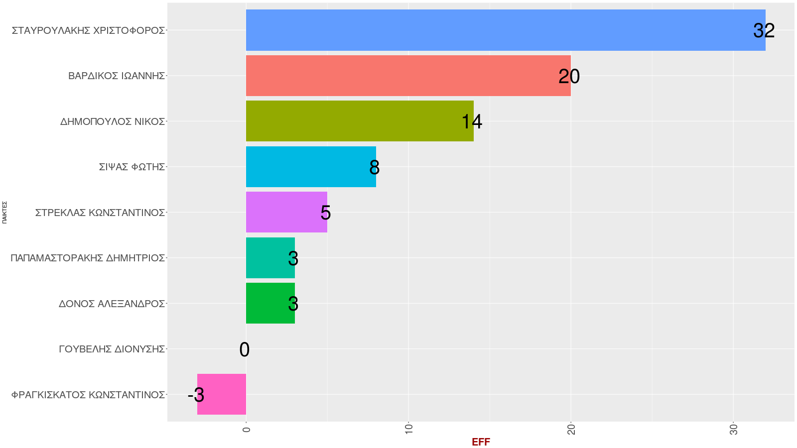 | 14 | Aσίστ (ποσοστό) | ΦΡΑΓΚΙΣΚΑΤΟΣ ΚΩΝΣΤΑΝΤΙΝΟΣ | 33.3 |
