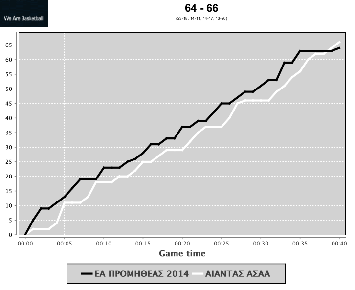 Τα δεκάλεπτα: 23-18, 37-29 (14-11), 51-46 (14-17), 64-66 (13-20).