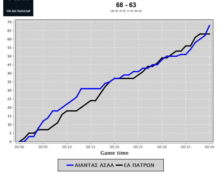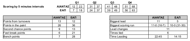 Τα δεκάλεπτα: 22-18, 37-37 (15-19), 48-49 (11-12), 68-63 (20-14).