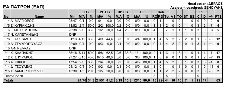 | 1 | Προσπάθειες για σουτ: | 63 | 70 |