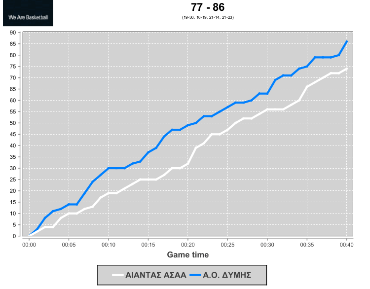 Την ήττα με σκορ 77-86 γνώρισαν οι άνδρες στο Κλειστό Δ. Τόφαλος με αντίπαλο τον ΑΟ Δύμης. Η Δύμη μπήκε πολύ δυνατά στον αγώνα και εκμεταλλευόμενη τα πολύ υψηλά ποσοστά ευστοχίας της πήρε το προβάδισμα στο σκορ και κατάφερε να το διατηρήσει μέχρι το τέλος.