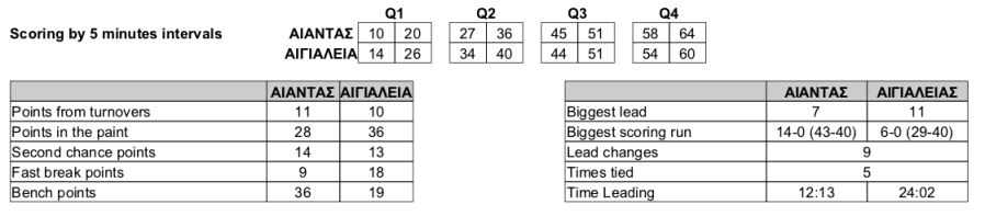 Τα δεκάλεπτα: 18-26, 36-40 (18-14), 51-51 (15-11), 64-60 (13-9).