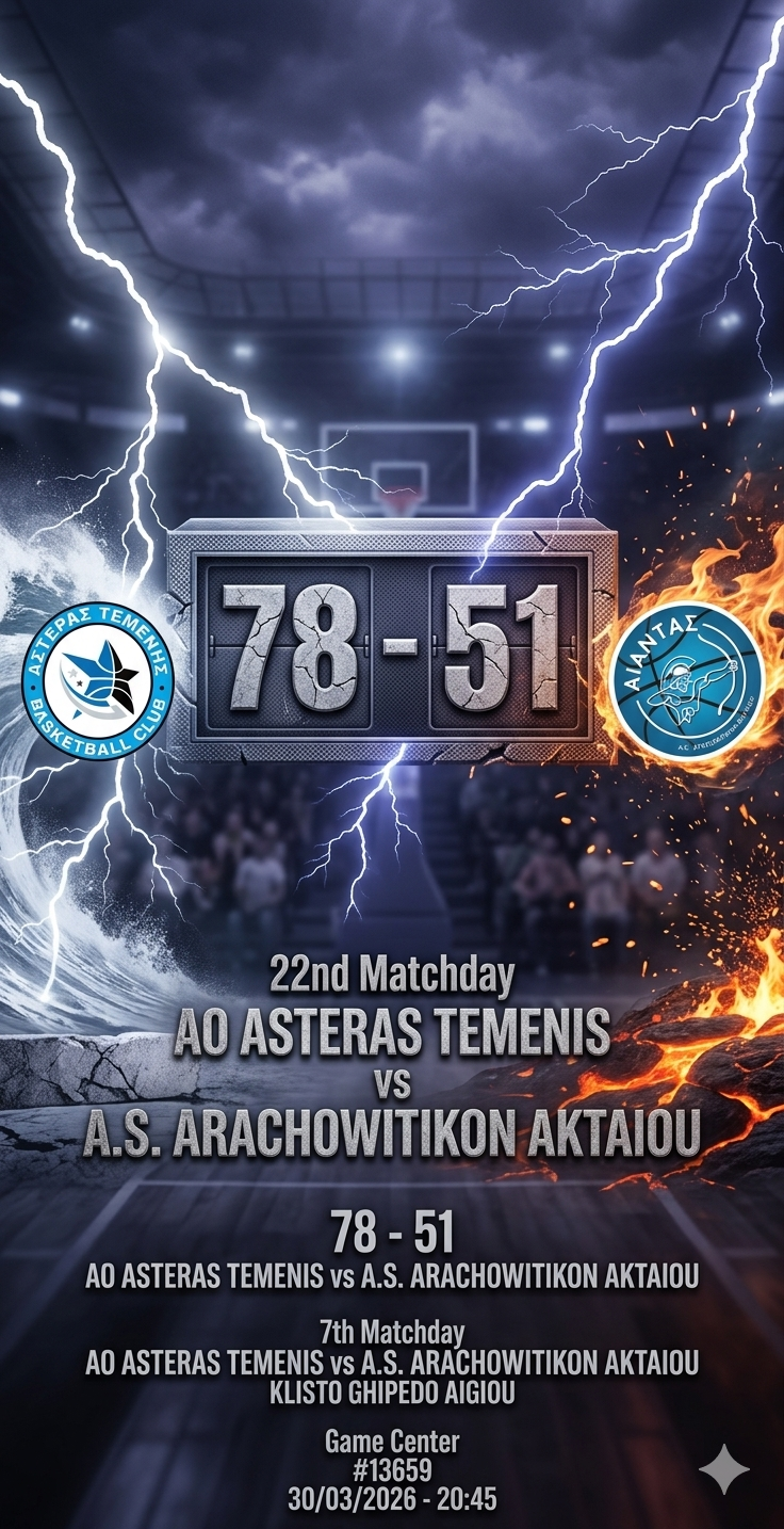 Το «Κλειδί» της Ήττας: Ο Αίαντας «προδόθηκε» από την τραγική του ημέρα στην επίθεση. Σημειώνοντας μόλις 32 πόντους σε τρία δεκάλεπτα (10, 13, 9), ήταν αδύνατον να κοιτάξει στα μάτια μια ομάδα όπως ο Αστέρας Τεμένης, που παίζει στην έδρα της. Οι γηπεδούχοι, με όπλο την πιεστική τους άμυνα, «βραχυκύκλωσαν» τα ατού μας και έβγαλαν εύκολα καλάθια στο τρανζίσιον.