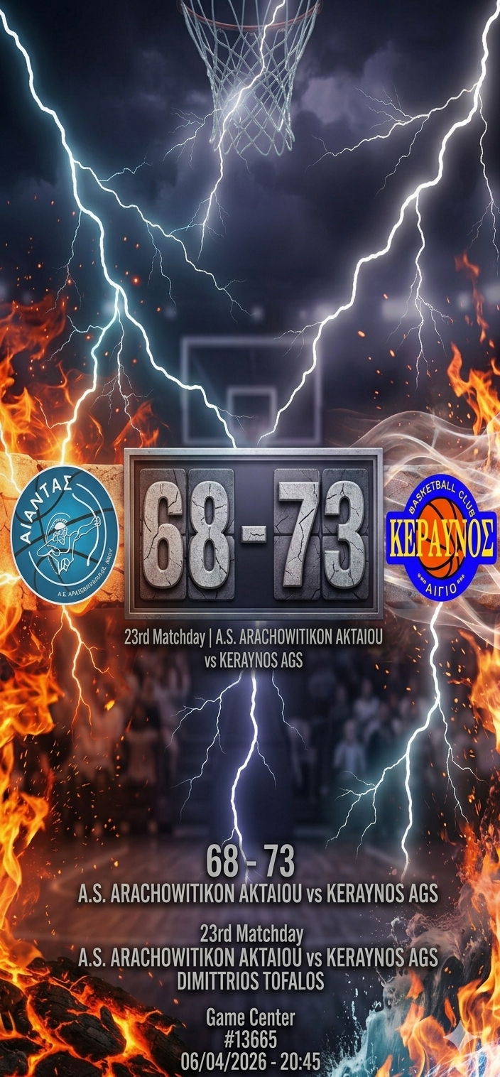 ΚΕΡΑΥΝΟΣ ΑΓΣ: Ζαβέρδας Γ. 20 (2), Παπαδόπουλος Ν. 16, Μπούρας Ν. 13, Λιόλιος Ν. 9, Φιλίππου Ν. 8 (2), Καλογιάννης Α. 6, Τσινούκας Γ. 1, Μπουντουράσας Κ., Ξένος Δ., Ροκανάς Φ..