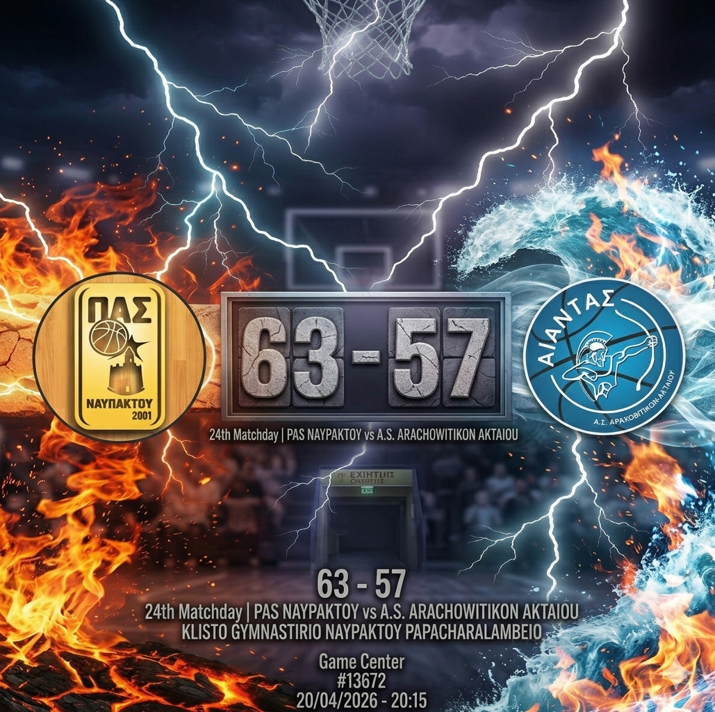 Σε ένα κλειστό παιχνίδι με χαμηλό σκορ και δυνατές άμυνες, η ομάδα μας ηττήθηκε στο «Παπαχαραλάμπειο» από τον ΠΑΣ Ναυπάκτου. Ο Αίαντας έδειξε χαρακτήρα, επιστρέφοντας από το -9 της πρώτης περιόδου και διεκδικώντας τη νίκη μέχρι το φινάλε, όμως η αστοχία σε κρίσιμα σημεία και η αποτελεσματικότητα των γηπεδούχων στις βολές στο τέλος έκριναν το αποτέλεσμα.